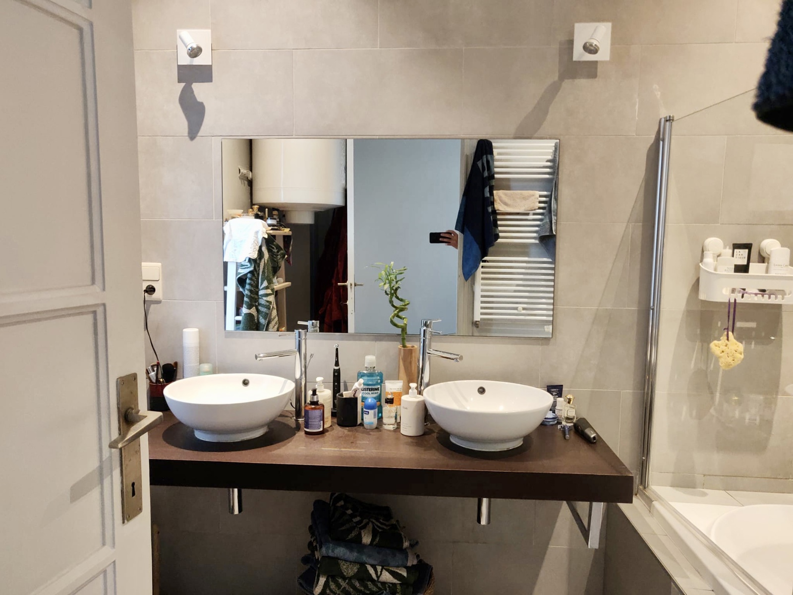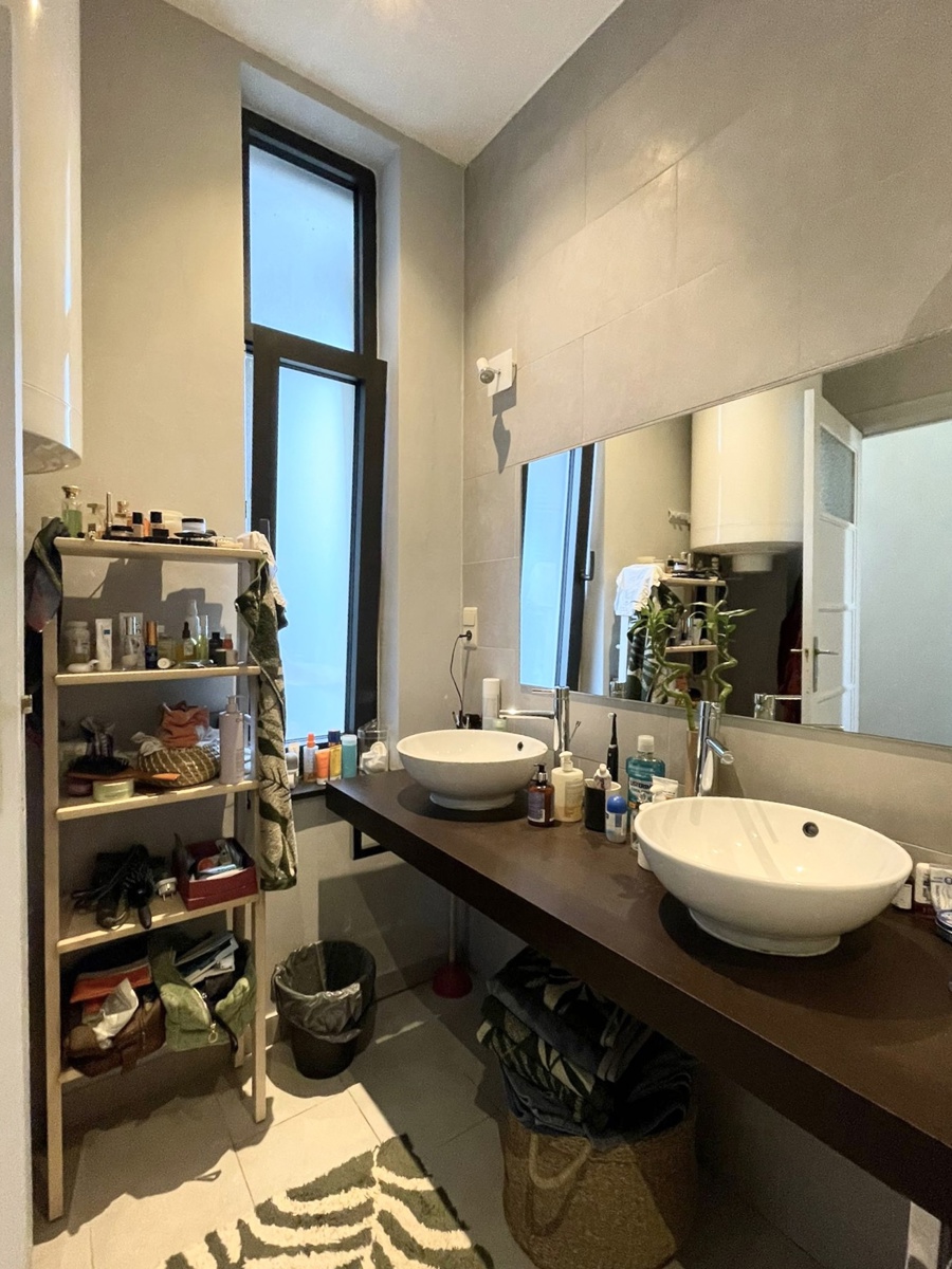 La partie nuit dessert une salle de bains avec double vasque, deux chambres de 12 et 19m², un dressing séparée de +/-2.50m².