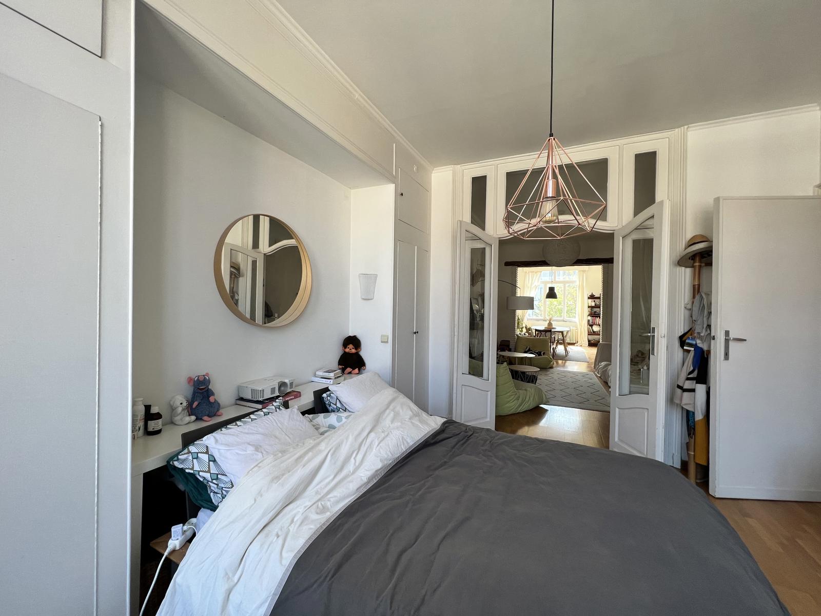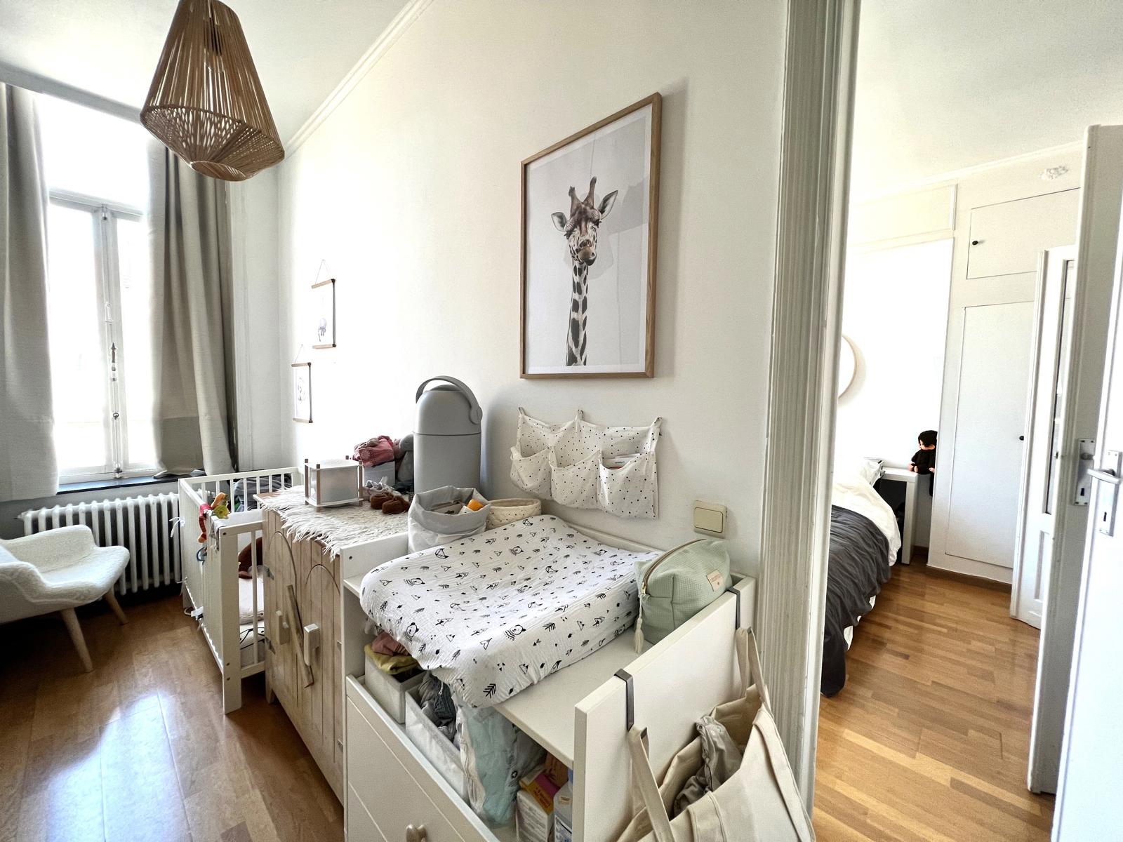 L'espace nuit dessert, une chambre de +/- 18m² avec en enfilade une seconde chambre de +/- 12m².