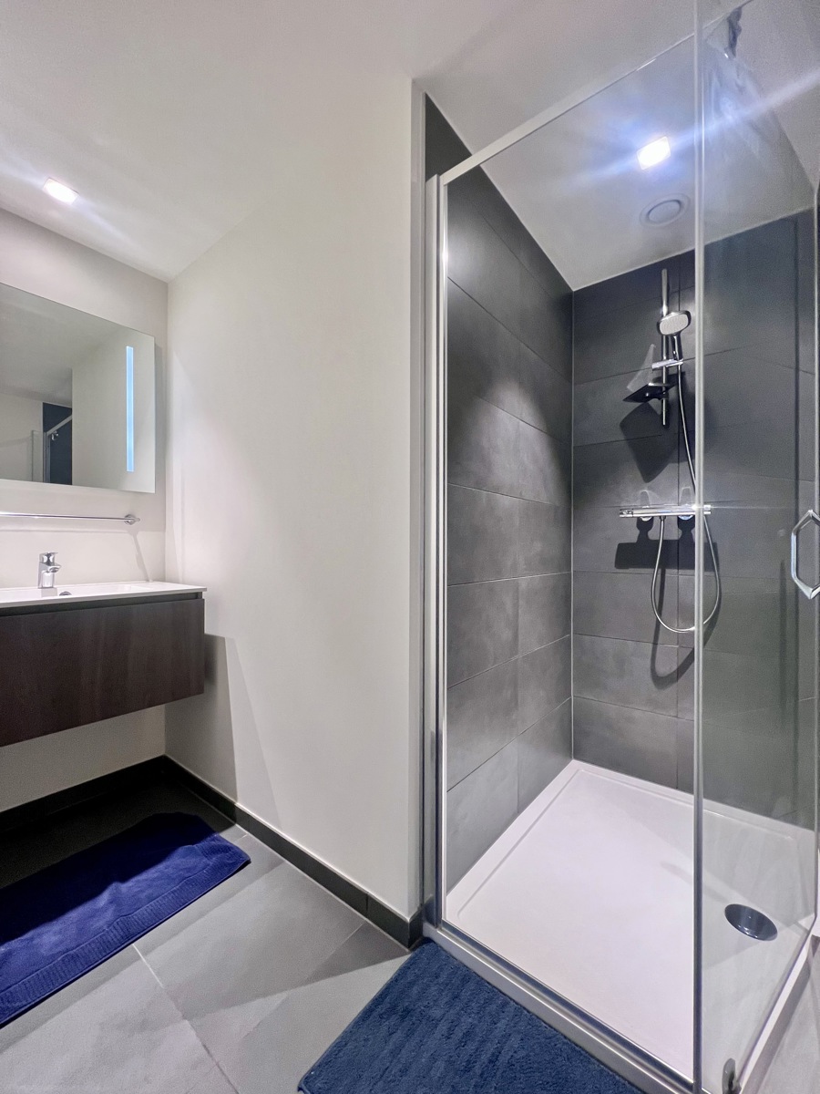 La partie nuit dessert la chambre avec placards et sa salle de douches.