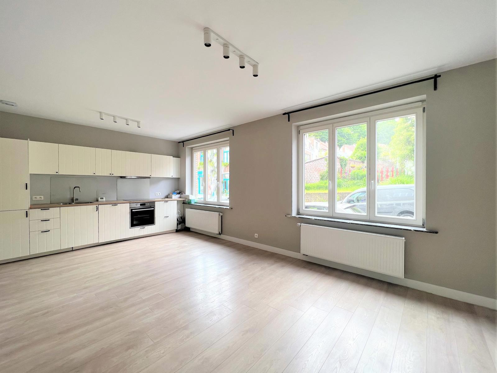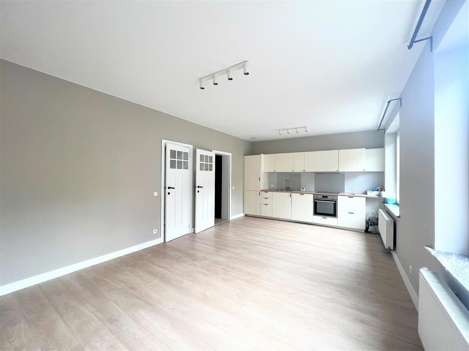 Il est agencé comme suit : hall d'entrée, un living de ±30m² avec cuisine ouverte équipée, une chambre, un bureau, un wc séparé, espace buanderie, une salle de douches, cour extérieure de ±30m².