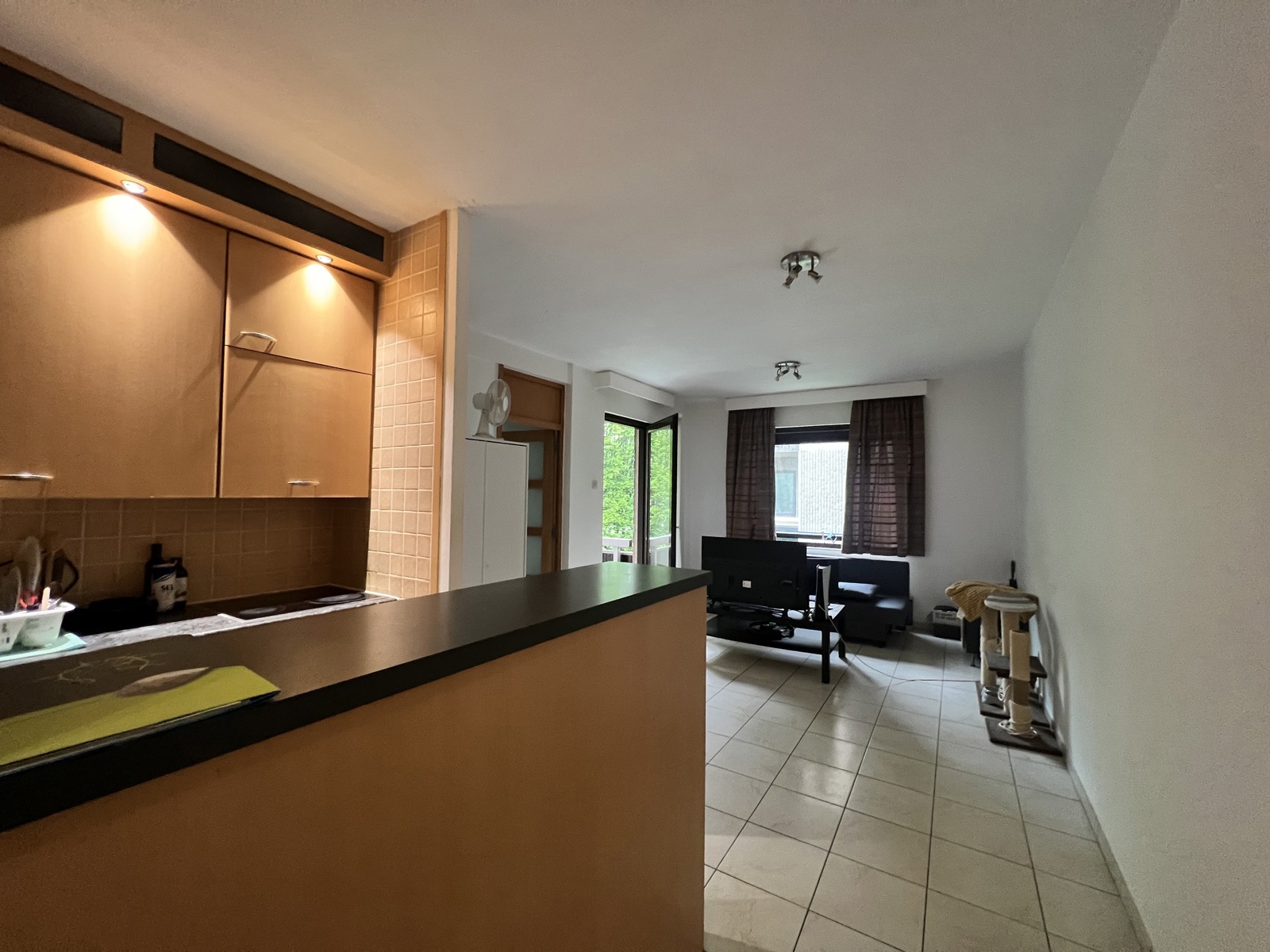 Appartement au 2ème étage d'une copropriété bien entretenu, cet appartement se compose ainsi: une pièce de vie avec cuisine semi équipée ouverte donnant sur une terrasse, une chambre avec salle de bain et espace buanderie, wc séparée.