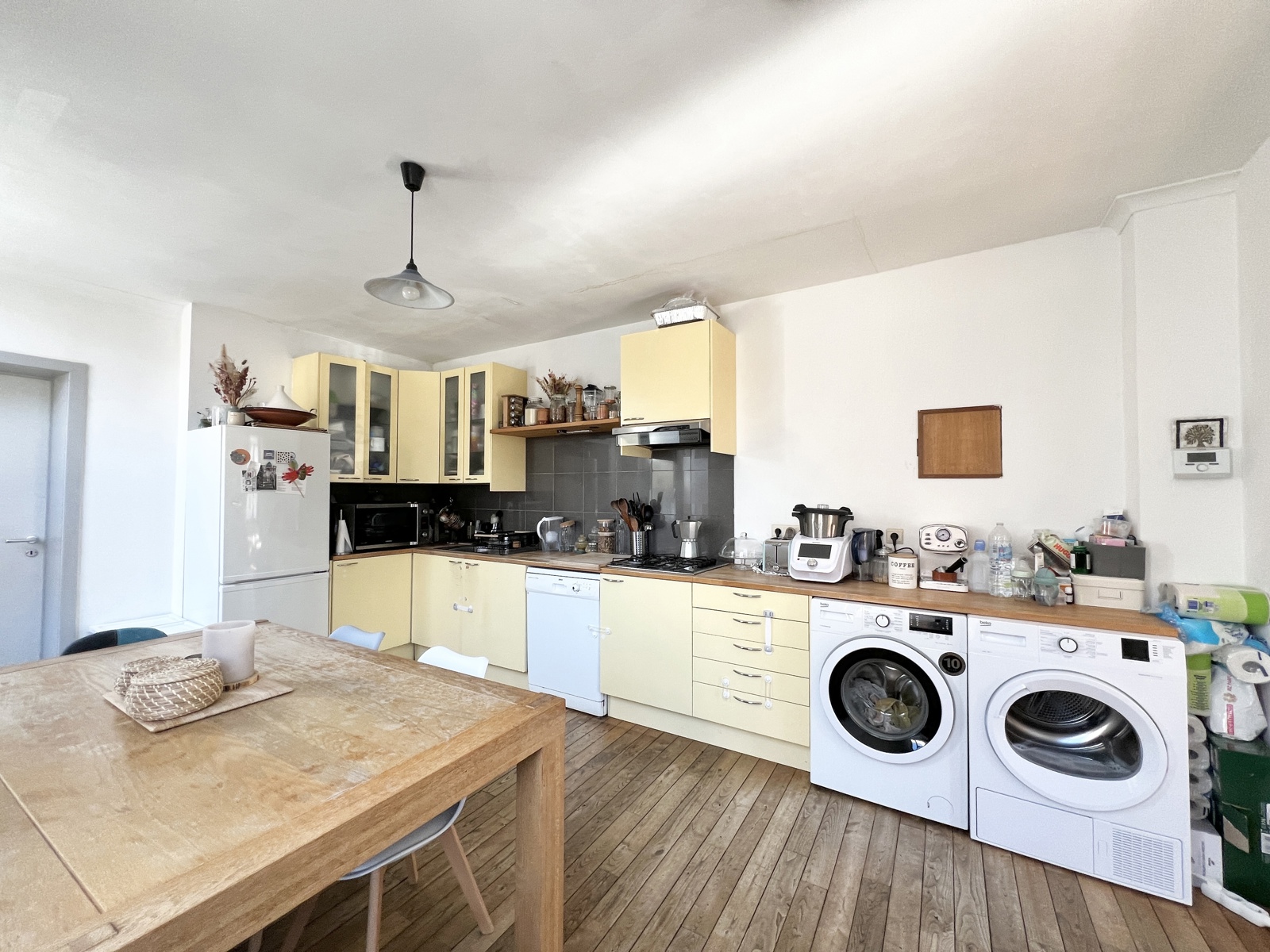 Il est agencé comme suit : Salon/ Salle à manger de +/- 35m², grande cuisine +/ 20m² avec coin à déjeuner et/ou salle à manger (frigo et congélateur, taque au gaz et petit four). Chambre de 18m² et salle de douches avec toilette.