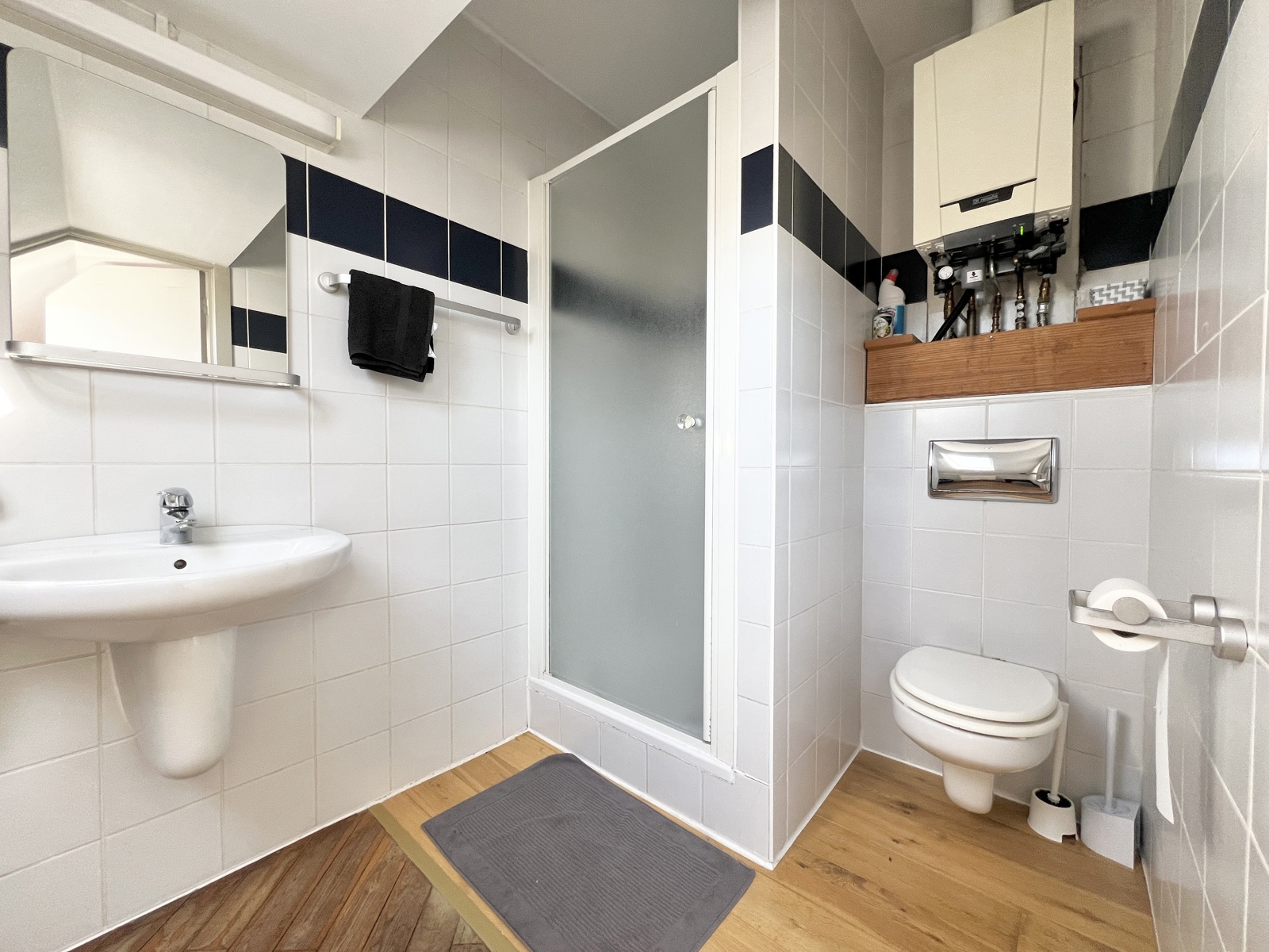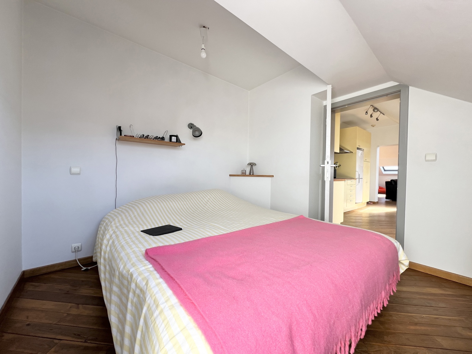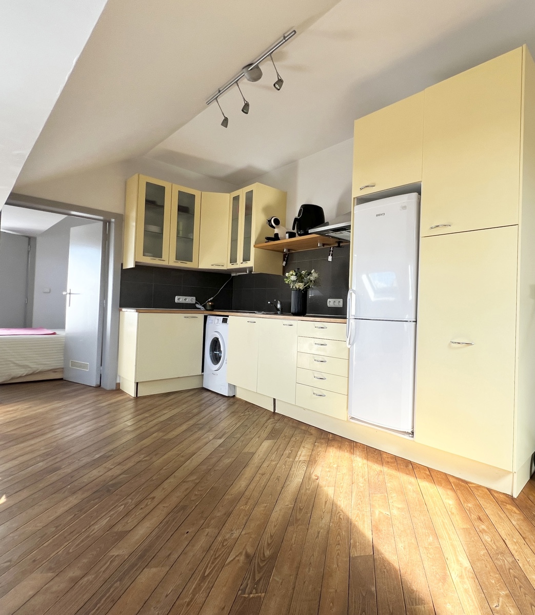 Il est agencé comme suit : Salon/ Salle à manger de +/- 33m², grande cuisine avec coin à déjeuner et/ou salle à manger (frigo et congélateur, taque, four). Chambre de 14m² et salle de douche avec toilette.