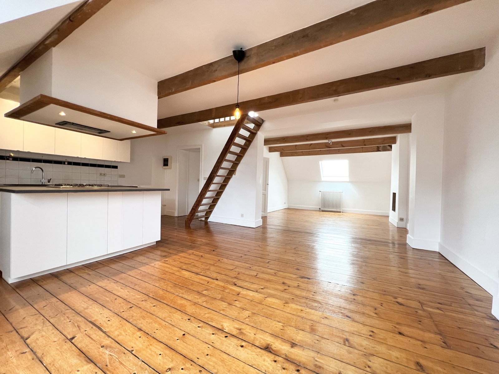 Saint Gilles non loin du quartier du Chatelain, magnifique appartement en duplex de +/-90 m²situé au 3ème et dernier étage dans un petit immeuble sans ascenseur.