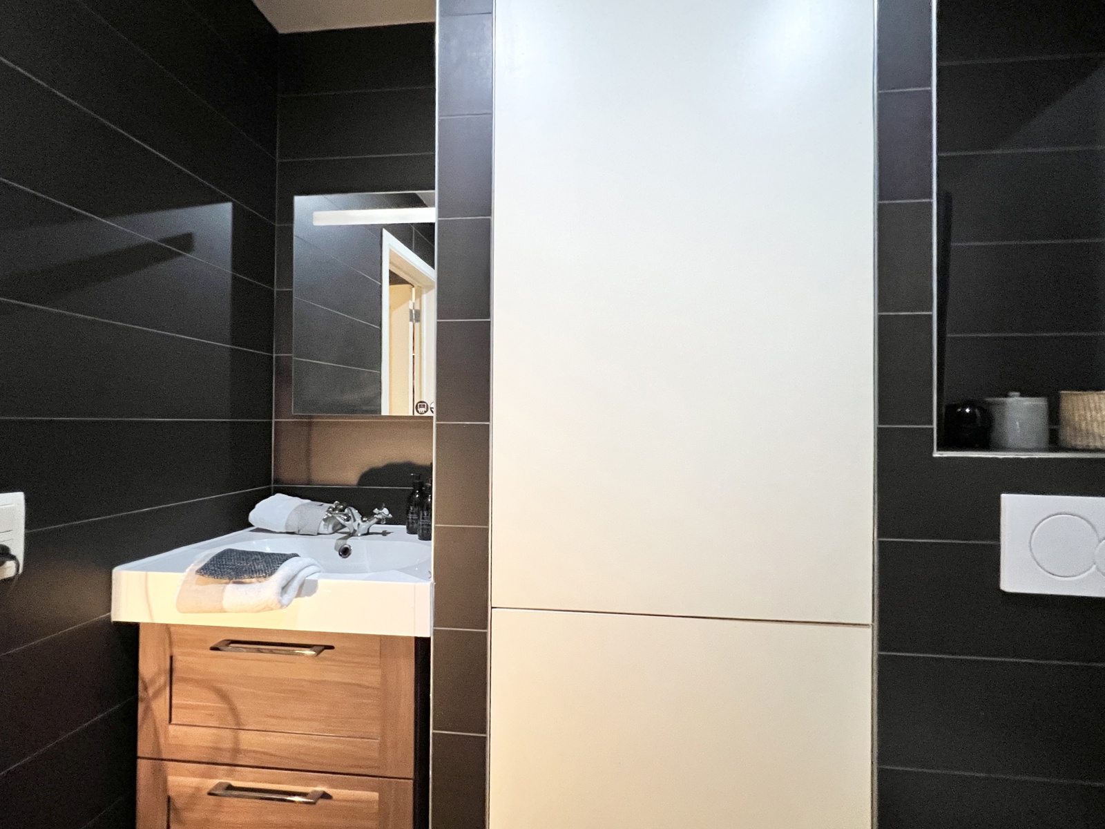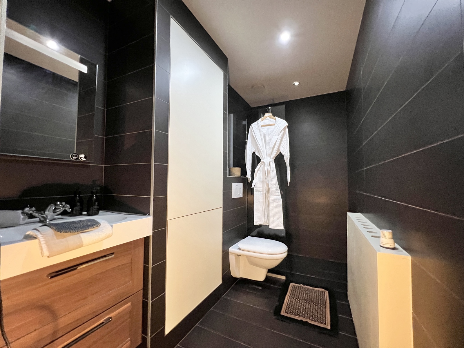 La partie nuit comprend :Une belle chambre de ±12 m². Une salle de douches avec WC