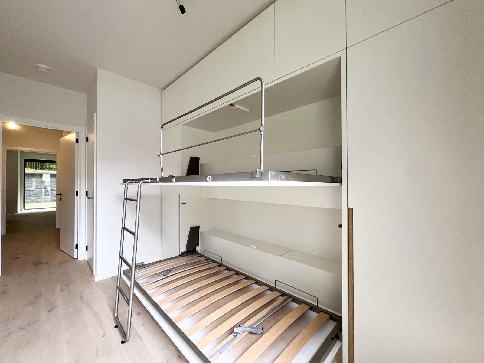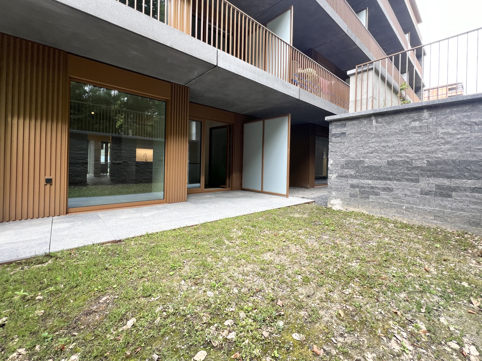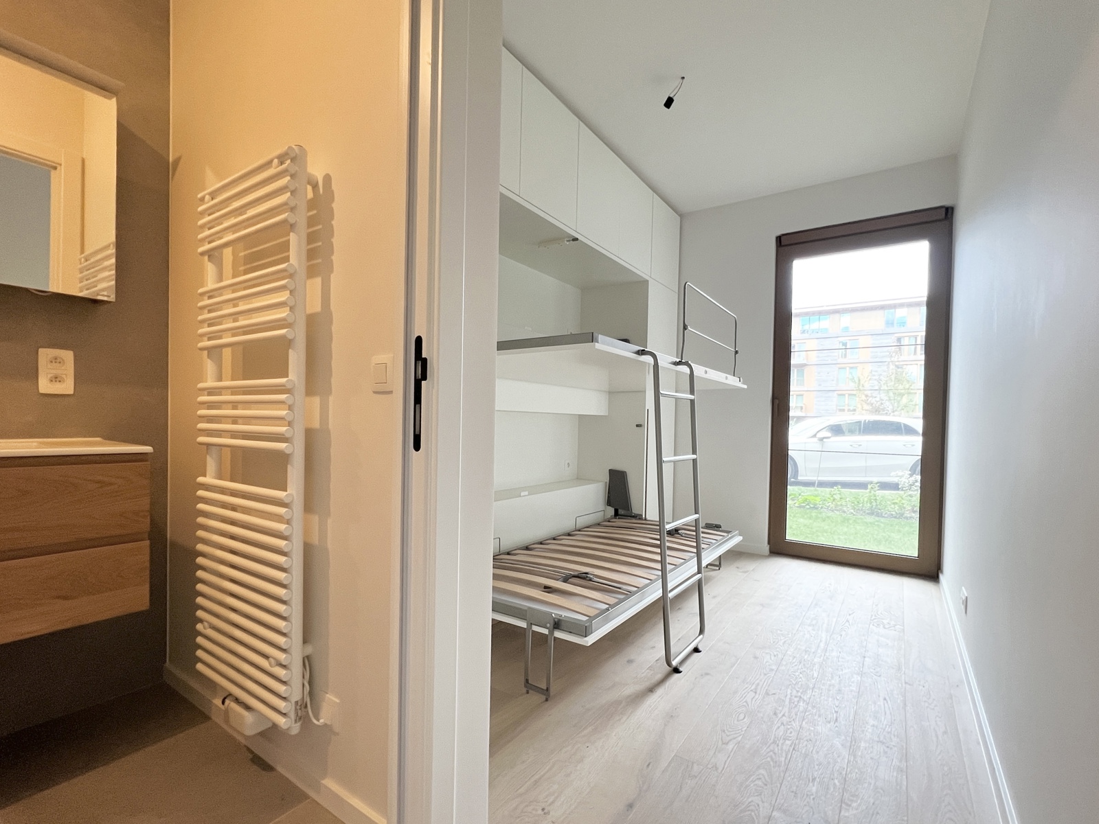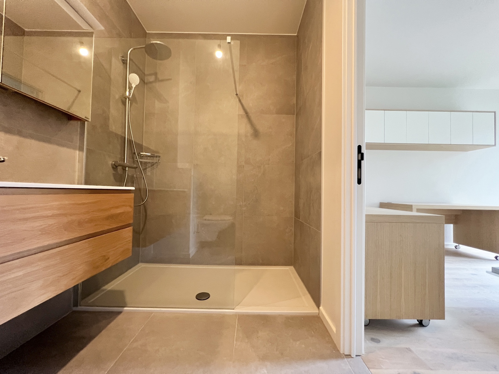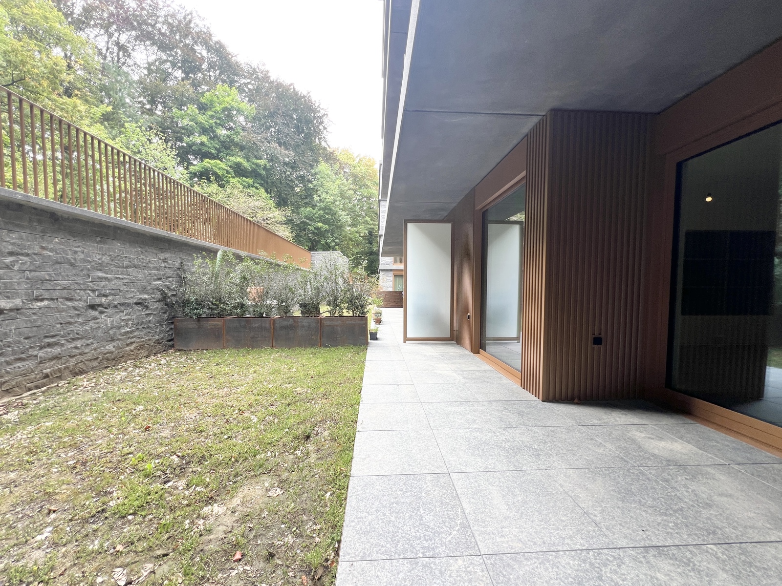 A Boistfort, en face du MIX dans le luxueux complexe de l'ancienne et célèbre Royal Belge "Souverain 23", luxueux appartement rez de jardin de +/- 95m² neuf agrémenté d'un ensemble de mobilier sur mesure d'une valeur de 50.000€ htva.