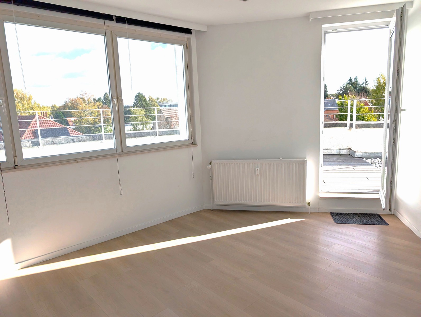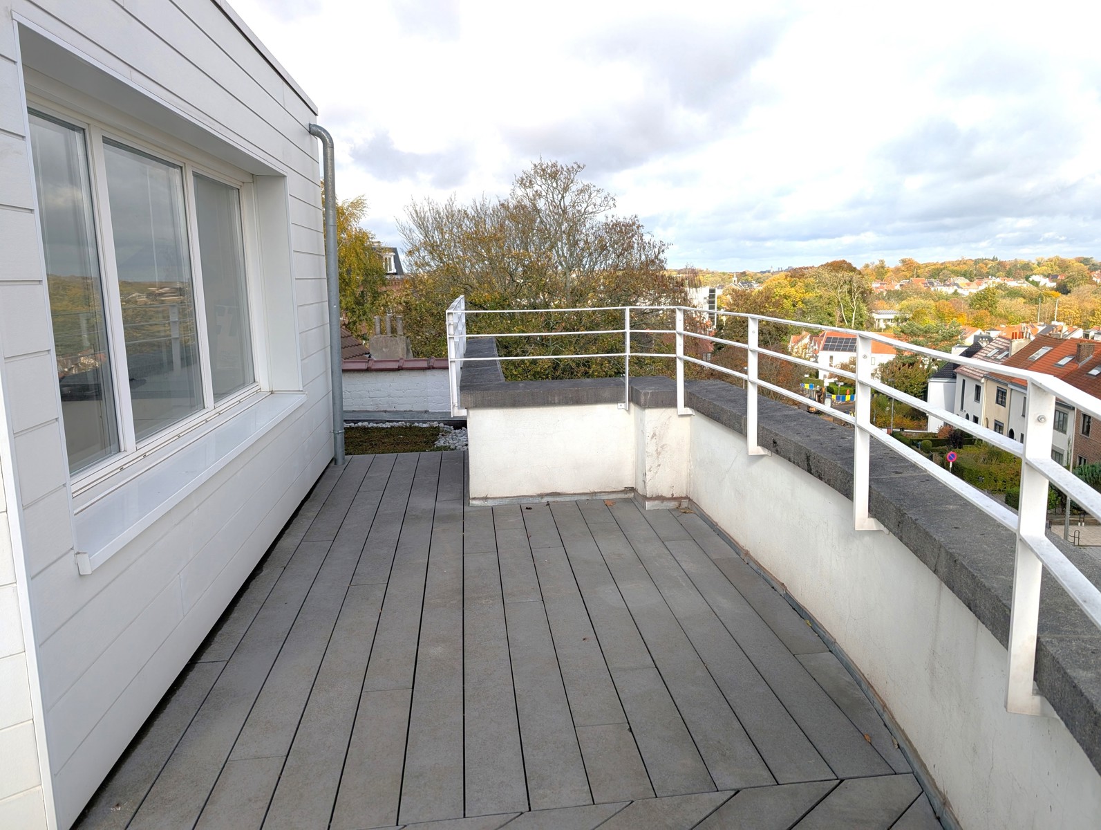 OFFRE ACCEPTÉE - VISITES SUSPENDUES. A deux pas de la Forêt de Soignes, du départ de la E411 et du métro Hermann-Debroux, incroyable appartement 1 chambre de 53m² au 3ème étage d'un petit immeuble bien entretenu. Vous profiterez en plus d'une incroyable terrasse de 25 m² avec une vue panoramique sur les environs. Il se compose comme suit: living cuisine super équipée à l'avant, chambre à l'arrière (14,7m²), salle de douche, WC séparé, espace buanderie. cave. Pas d'ascenseur.
