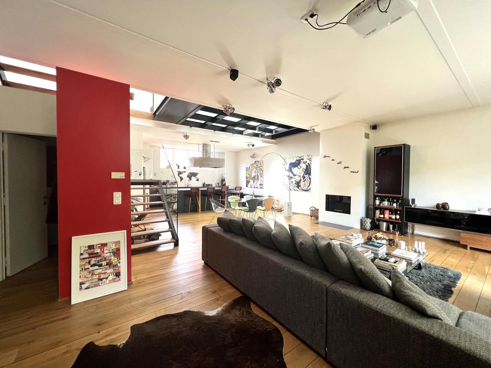 Quai de l’industrie à l’intérieur d’un petit ilot sécurisé, luxueux et somptueux loft de +/- 202m² habitable situé dans un havre de paix au calme et en toute intimité.