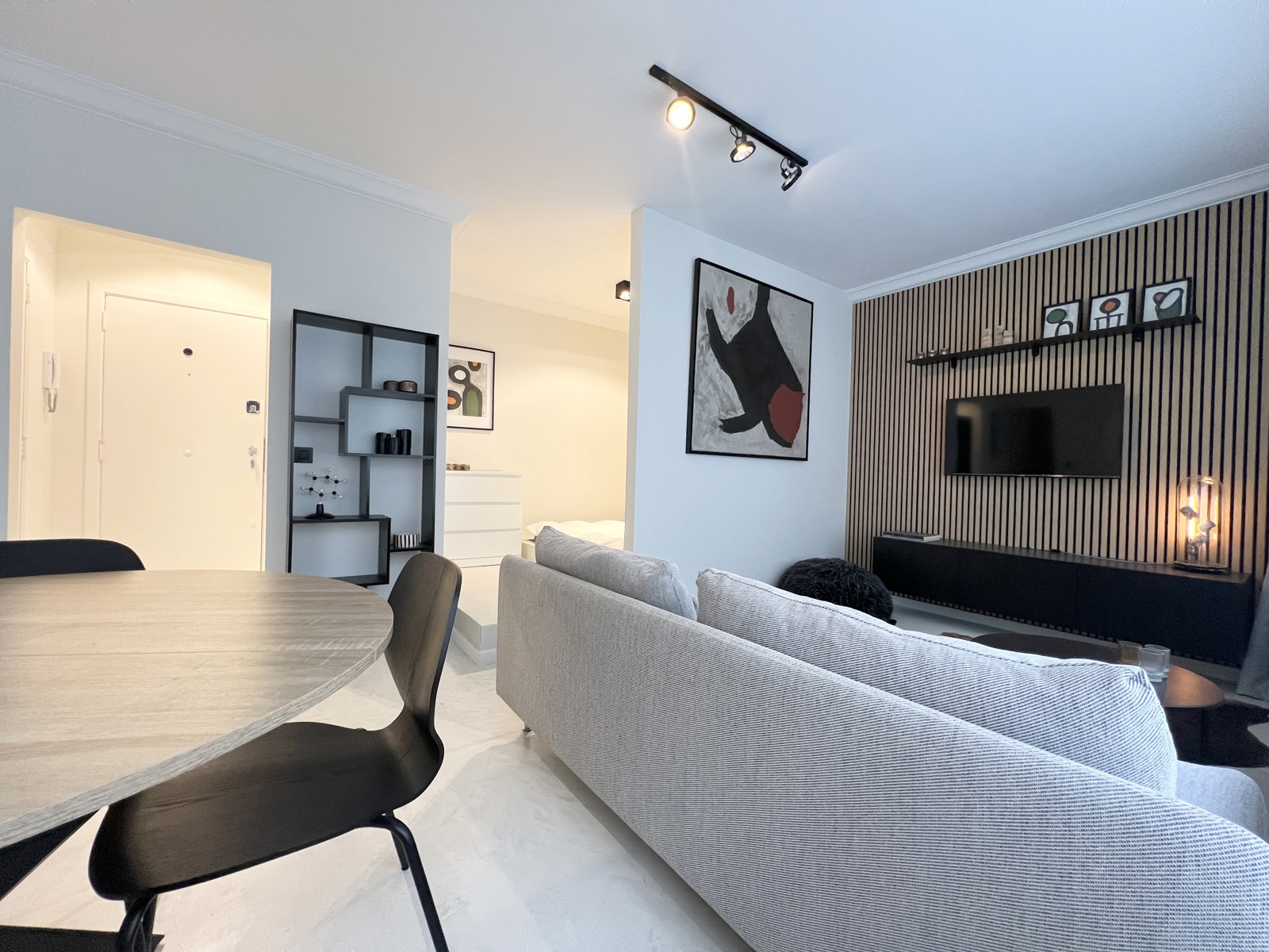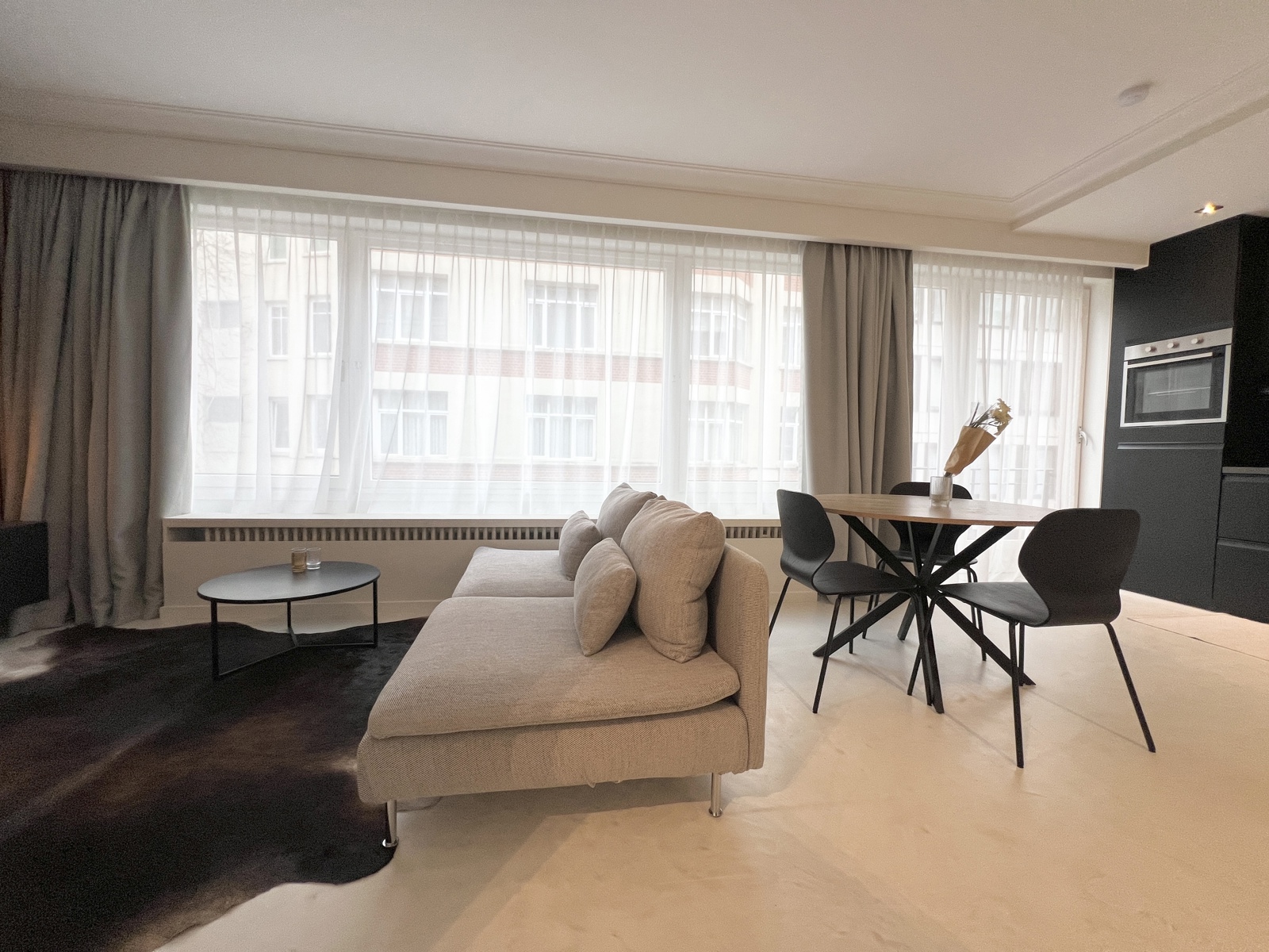 Idéalement situé à proximité de l'avenue Louise, des transports, des commerces cet appartement rénové au 2ème étage avec ascenseur, se compose ainsi: une grande pièce de vie avec une cuisine américaine équipée, un espace chambre, une salle de douche avec coin buanderie, wc séparés.